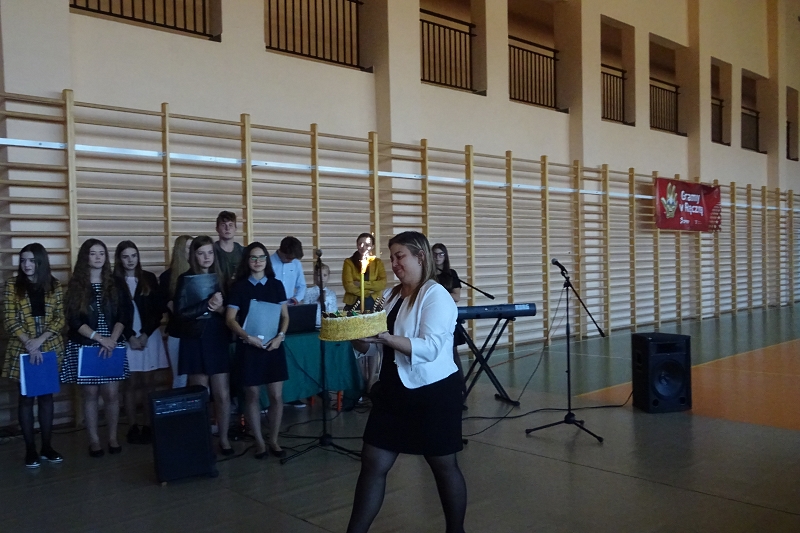 Na zakończenie wiele ciepłych i miłych słów w kierunku pedagogów popłynęło od zaproszonych gości oraz od pani Katarzyny Papki, przedstawiciela Rady Rodziców, która w imieniu rodziców wyraziła wdzięczność za codzienny trud pracy nauczyciela, jego poświęcenie, czujność i troskę o dobro wychowanków. Nie obyło się bez słodkiej niespodzianki dla pracowników szkoły, jak i dla uczniów.