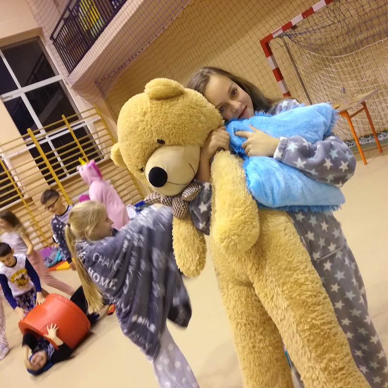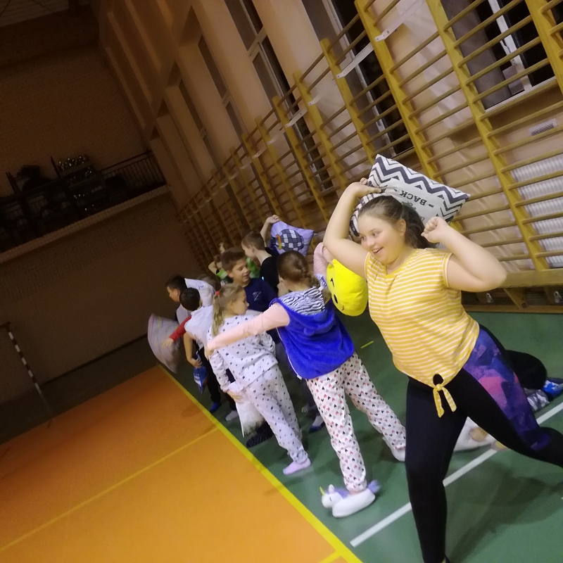 Podczas „nocy w szkole” dzieci zobaczyły szkołę od innej, mniej oficjalnej strony. Atmosfera zabawy, akceptacji, życzliwości, która towarzyszyła tej imprezie na pewno pozwoliła uczniom polubić szkołę i odnaleźć tu swoje miejsce, a przejście wieczorem po szkolnych korytarzach w domowych kapciach i pidżamach pomogło traktować szkołę jak drugi dom.
