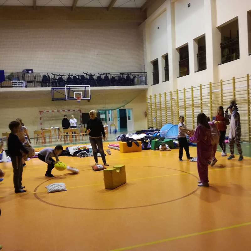 Dnia (a właściwie i nocy) 30 października 2019 r. uczniowie klasy V, VI, aktyw biblioteczny oraz harcerze wraz z opiekunkami – p. Agnieszką Gajos, p. Beatą Krajewską, p. Karoliną Kędzior i p. Renatą Sowińską spotkali się o godzinie 19:00 w naszej szkole. Po pierwszych okrzykach zachwytu i radości przystąpiliśmy do przygotowania miejsc do spania. Naszą "sypialnią" była sala gimnastyczna.