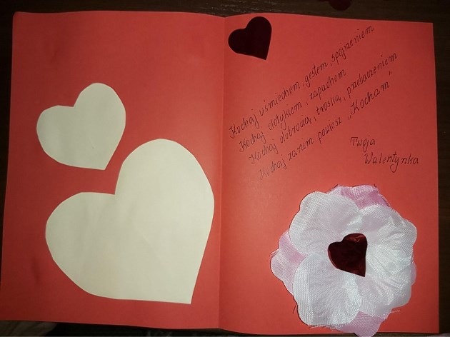 Szczęścia w miłości,Dużo uścisków, samych radości,Spełnienia marzeń,Moc słodyczy,W dniu św. Walentego Samorząd Uczniowski życzy...