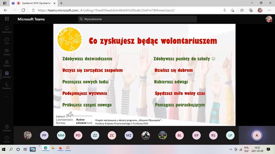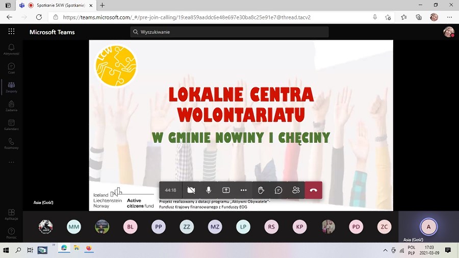 Jak już pisaliśmy na terenie naszej gminy i gminy Nowiny powstały dwa Lokalne Centra Wolontariatu, po jednym w każdej z nich. W dniu wczorajszym odbyło się spotkanie informacyjne naszych szkolnych wolontariuszy i nauczycieli z koordynatorkami w/w Centrów - Panią Joanną Sędziejewską i Panią Kamilą Piotrowicz.