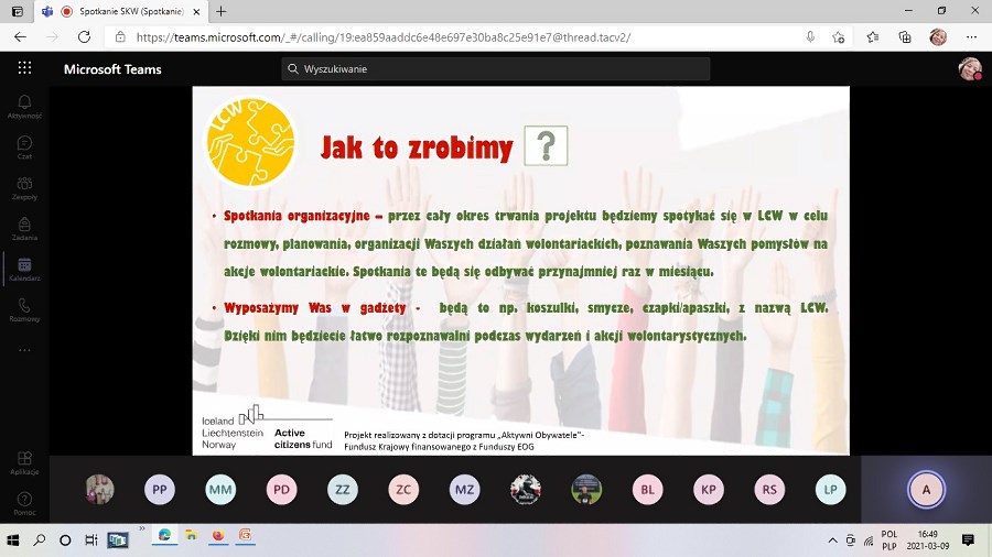 Wszystkim obecnym przedstawiono plan działania i zakres. Projekt zakłada, aby przyszły wolontariusz przynajmniej dwie godziny w miesiącu wykonywał swoją pracę. W ramach zadania zostaną przeprowadzone szkolenia dla przyszłych wolontariuszy, wyjazdy studyjne. Przynajmniej raz w miesiącu odbędą się wspólne spotkania tych dwóch Centrów. Każdy z uczestników zostanie też wyposażony w odpowiedni sprzęt, aby być rozpoznawalnym podczas różnych wydarzeń.