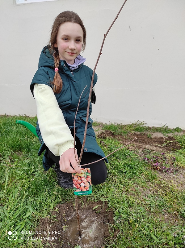 Każdy uczeń otrzymał drzewo, które następnie zasadził na własnej posesji. Uczniowie zaznaczyli tą akcją ,iż los naszej planety nie jest im obojętny i na miarę swoich możliwości starają się dbać o Ziemię. Drzewa nie tylko regulują gospodarkę wodną, ale są ekologicznym filtrem powietrza dla naszego środowiska. Nawet niewielkiej ilości drzewo wytwarza w ciągu roku tyle tlenu ile potrzebuje dorosły człowiek.