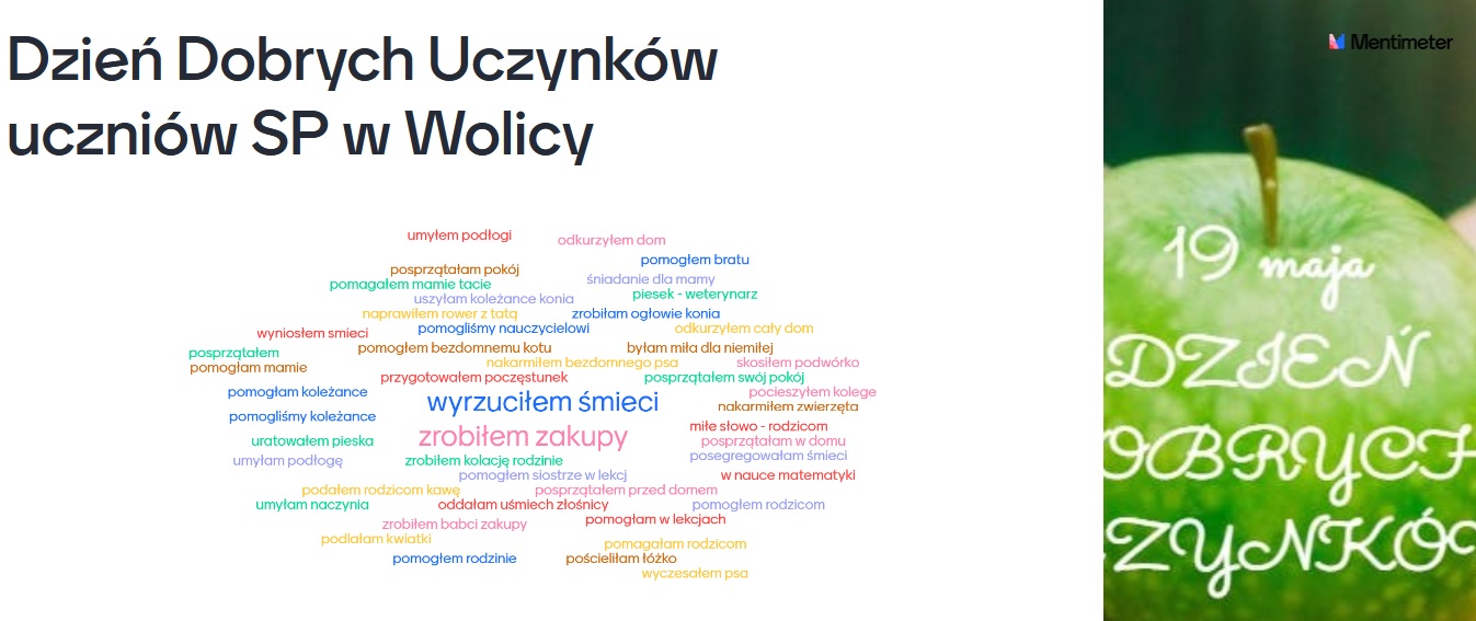 Przygotowaliśmy do tego odpowiednie narzędzie i tak powstała nasza chmura dobrych uczynków. Trzeba przyznać, że nasi uczniowie mają wielką siłę do pomagania innym.