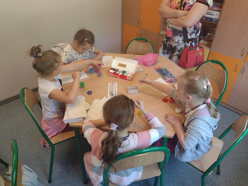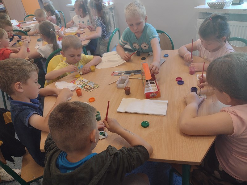 Kolejną wielką atrakcją dla naszych najmłodszych były przygotowane warsztaty polegające na kolorowaniu farbkami amonitów. Nasi podopieczni wzięli udział w pokazie wybijania monet. Na zakończenie dzieci zakupiły sobie pamiątki.