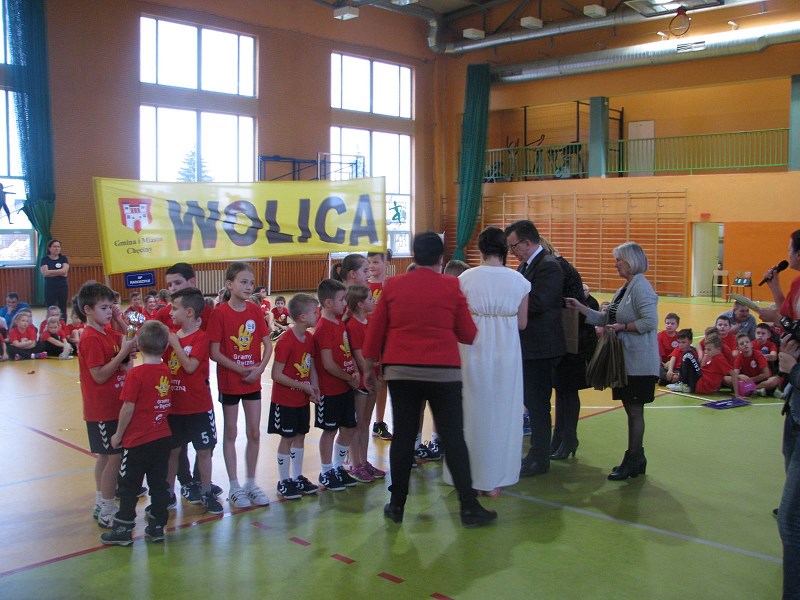 Drużyny podzielono na dwie grupy , grając systemem „ każdy z każdym”. Drużyna ze Szkoły Podstawowej w Wolicy rywalizowała w grupie z zespołami z Łopuszna, Buska- Zdroju, Radoszyc II. Pierwsze spotkanie Woliczanie przegrali z Łopusznem 12-5, następnie zwyciężyli z drużyną SP Radoszyce II 13-2 i przegrali decydujące spotkanie o wejście do fazy półfinałowej turnieju z Buskiem – Zdrój 8-9.