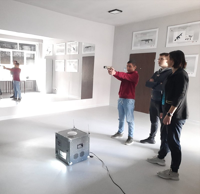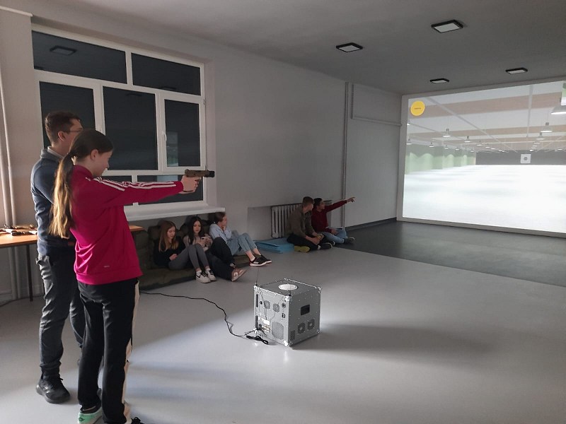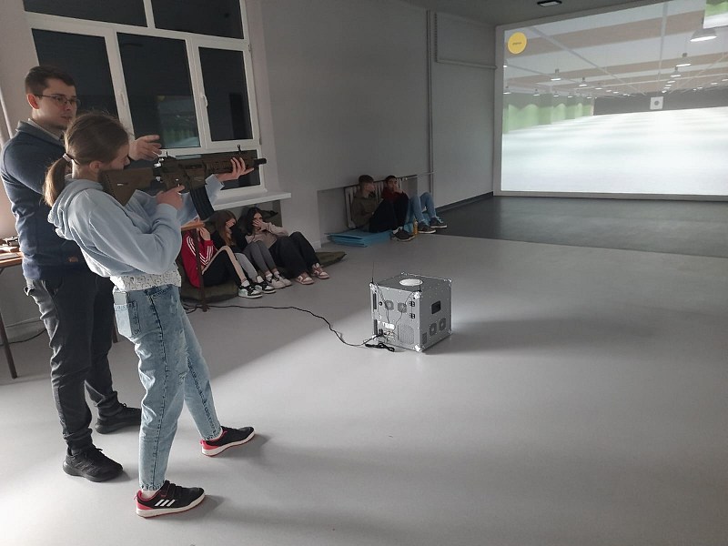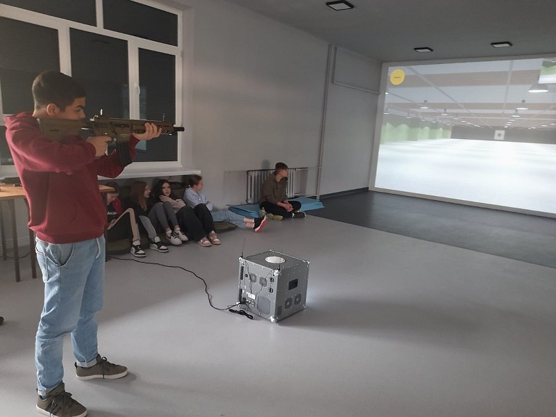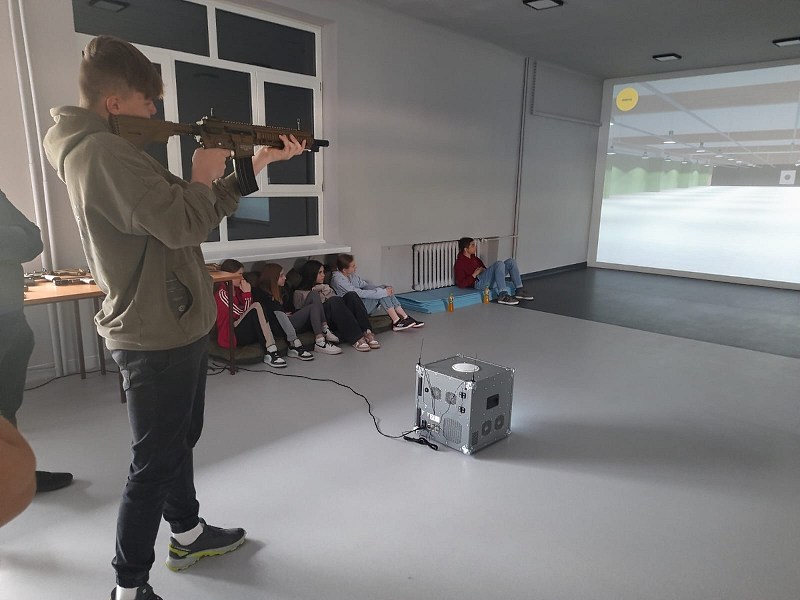 Po zapoznaniu się z ofertą edukacyjną szkoły, mieli okazję zwiedzić placówkę oraz uczestniczyć w warsztatach z języka angielskiego. Niewątpliwie największą atrakcją były zajęcia praktyczne na wirtualnej strzelnicy, którą dysponuje szkoła.