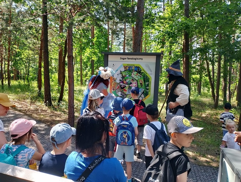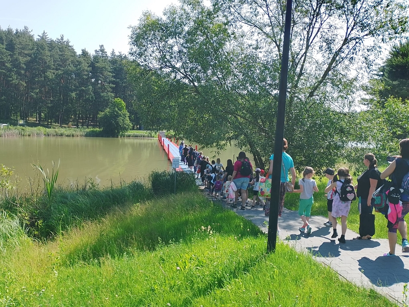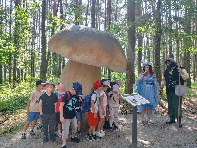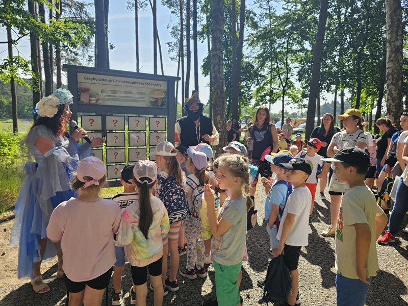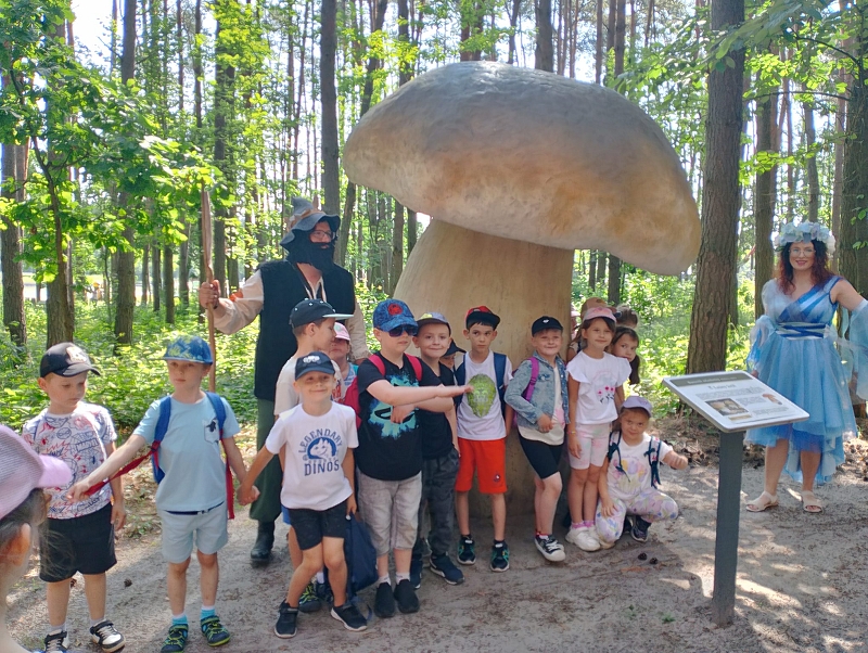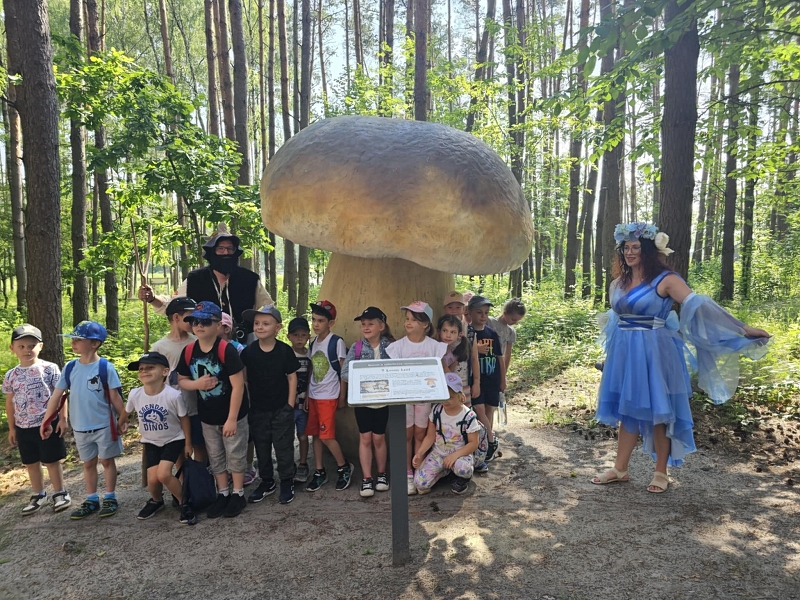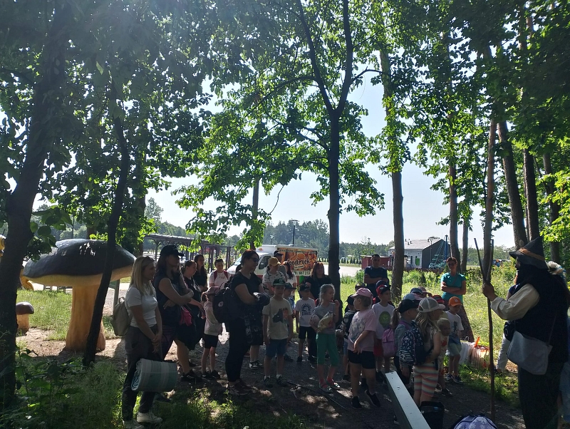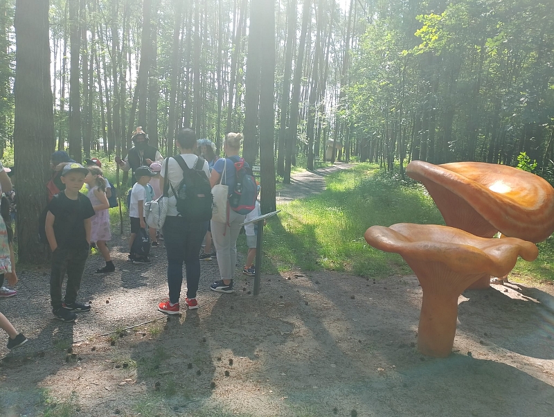 Na alejach można było poznać różne grzyby, zwierzęta oraz ciekawostki przyrodnicze. Wysłuchaliśmy ciekawych legend. Spacerując po ścieżkach dotarliśmy do pływającego pomostu, który okazał się nie taki straszny. Potem przeszliśmy do wielkiej piaskownicy. Zabaw nie było końca. Dla głodnych dzieci rodzice upiekli kiełbaski przy ognisku. Można było też zjeść coś w food trucku. Zmęczeni, wybawieni, uśmiechnięci wróciliśmy do szkoły. Wrażenia z wycieczki pozostaną na długo w naszej pamięci.