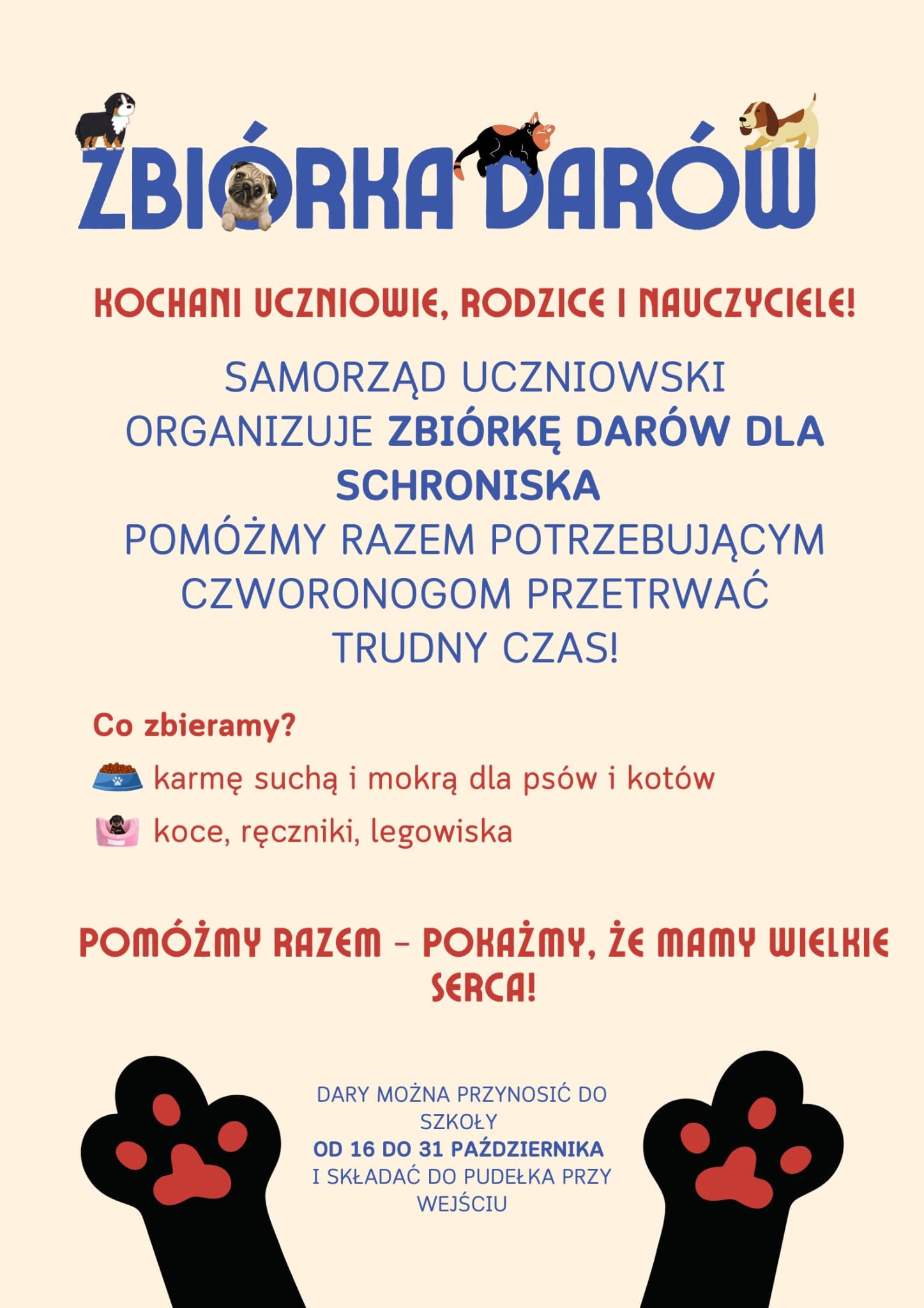 Samorząd Uczniowski organizuje akcję zbiórki darów dla schroniska – każdy może dorzucić coś od siebie