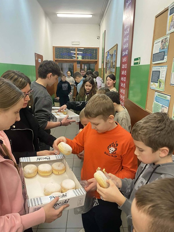 Serdecznie dziękujemy Radzie Rodziców oraz Samorządowi Uczniowskiemu za przygotowanie i ufundowanie tych pysznych pączusiów. Dzięki Wam ten dzień był jeszcze bardziej wyjątkowy i pełen uśmiechu!