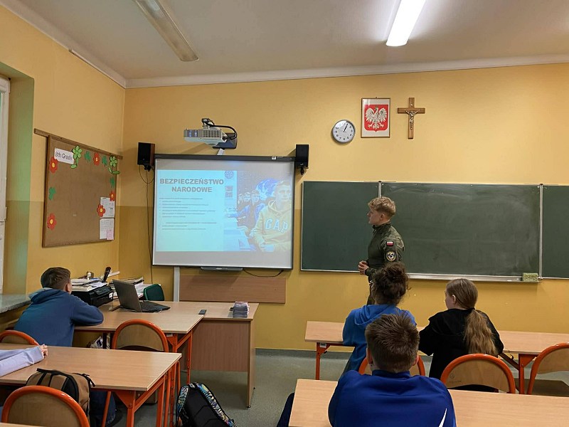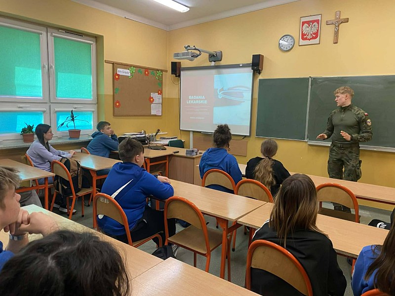 W piątek 10 kwietnia uczniowie klas 7 i 8 naszej szkoły mieli okazję uczestniczyć w niezwykle interesującym spotkaniu z panem Mateuszem Paluchem – studentem Lotniczej Akademii Wojskowej w Dęblinie. Wydarzenie to odbyło się w ramach innowacji pedagogicznej realizowanej w naszej placówce pod hasłem „Być albo nie być? Ale kim…?”.