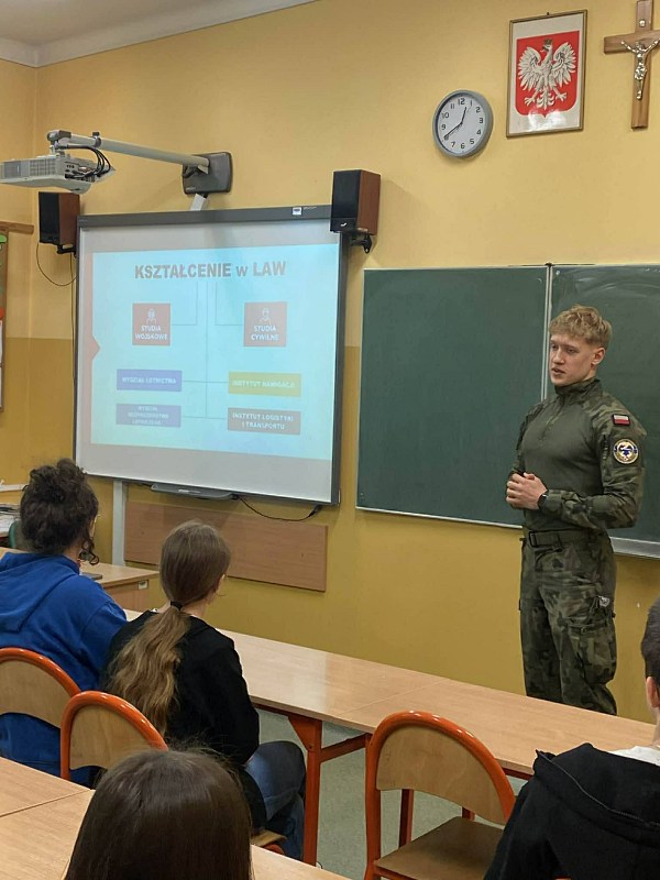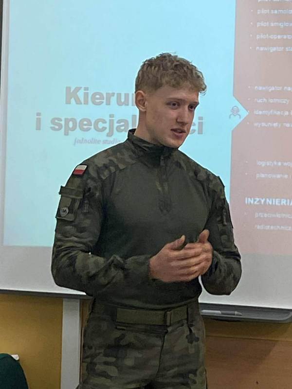 Podczas spotkania nasz gość opowiedział o swojej drodze edukacyjnej, pasji do lotnictwa oraz wymaganiach, jakie stawia przed kandydatami uczelnia wojskowa. Uczniowie mogli dowiedzieć się, jak wygląda codzienne życie studenta akademii, jakie umiejętności są niezbędne w tym zawodzie oraz jakie możliwości daje służba w siłach powietrznych.
