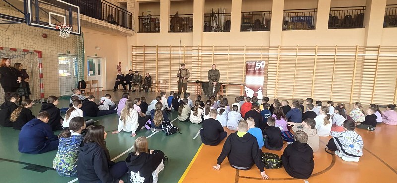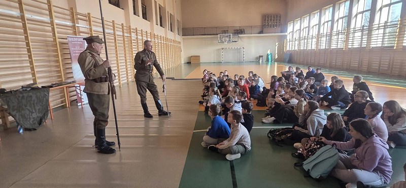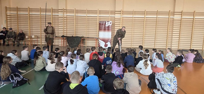 Aby zachęcić uczniów do odwiedzenia muzeum przywieziono różne mundury wojskowe oraz broń z okresu ll wojny światowej, aby dzieci mogły bliżej zapoznać się z nimi. Była to żywa lekcja historii.