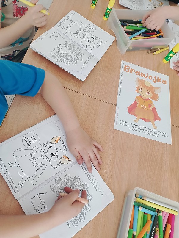 Podczas zajęć rozmawialiśmy o własnych talentach i sukcesach, obejrzeliśmy bajkę o Brawojce z Wyspy Dumy, a także uczestniczyliśmy w grach i zabawach związanych z tą emocją.
