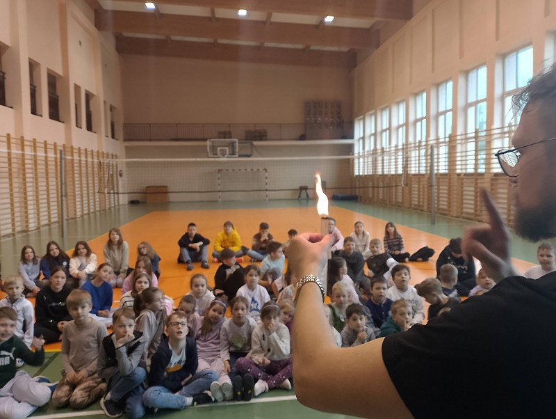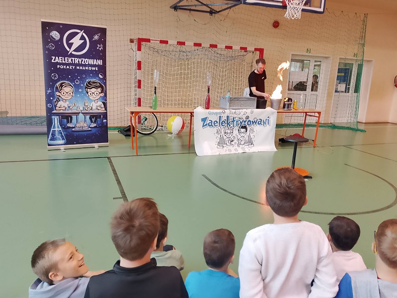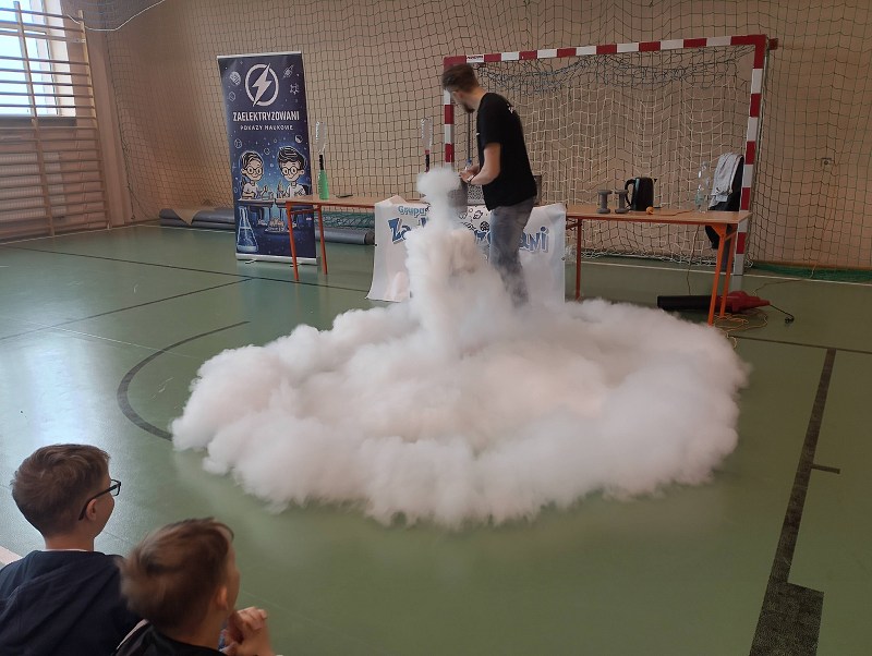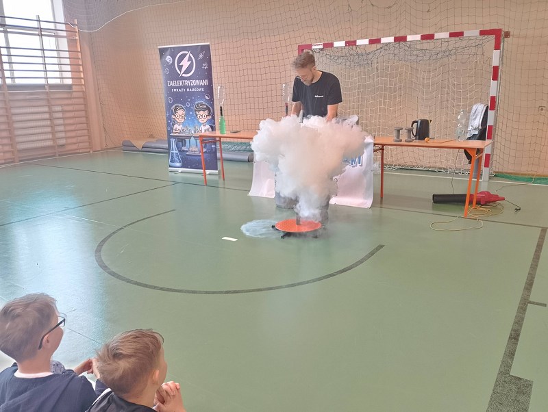 W poniedziałek w naszej szkole odbył się ciekawy pokaz naukowy dla uczniów. Podczas spotkania zaprezentowano efektowne doświadczenia z wykorzystaniem m.in. ciekłego azotu, ognia oraz powietrza. Uczniowie z dużym zainteresowaniem obserwowali eksperymenty i mogli zobaczyć, jak w praktyce wyglądają różne zjawiska fizyczne i chemiczne.