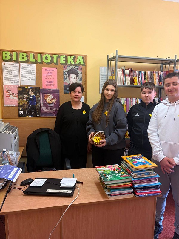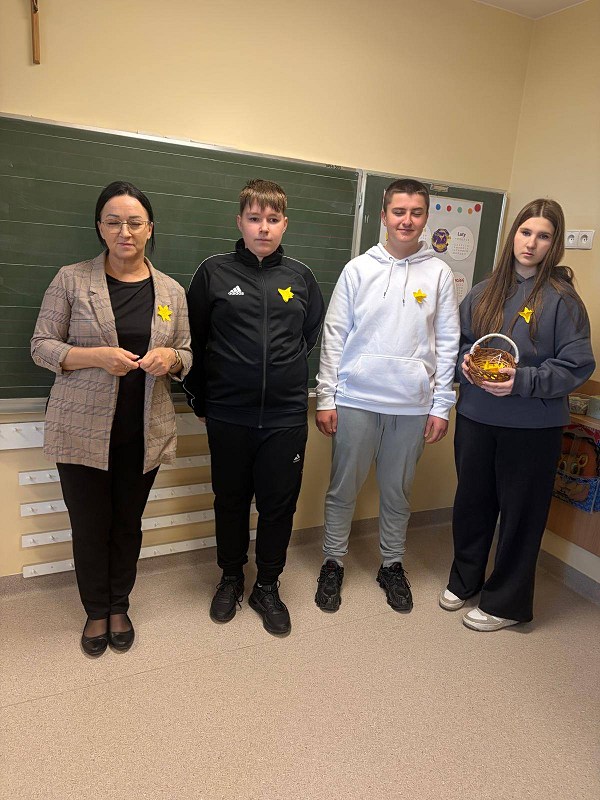 W dniu dzisiejszym w naszej szkole wolontariusze z klasy 7 Maja,Szymon i Eryk z okazji 83 rocznicy wybuchu Powstania w Getcie Warszawskim rozdawali własnoręcznie zrobione żonkile przedstawicielom wszystkich klas oraz nauczycielom. Akcja „Żonkile” odbywa się co roku pod patronatem Muzeum Historii Żydów Polskich Polin w Warszawie. Żonkile stanowią symbol pamięci,szacunku,nadziei oraz solidarności.