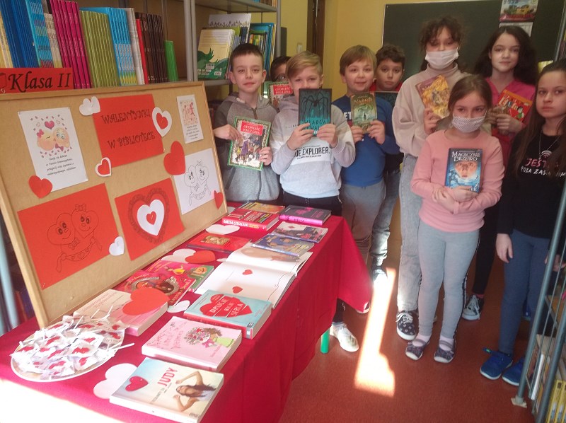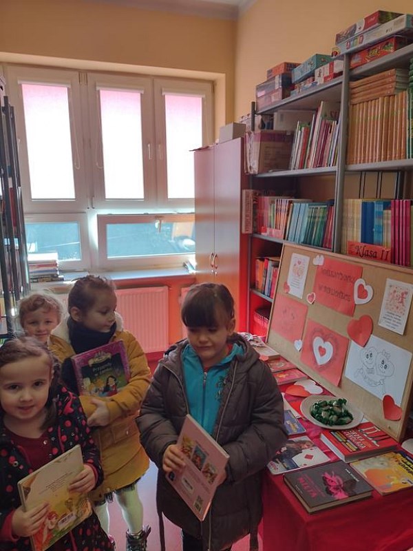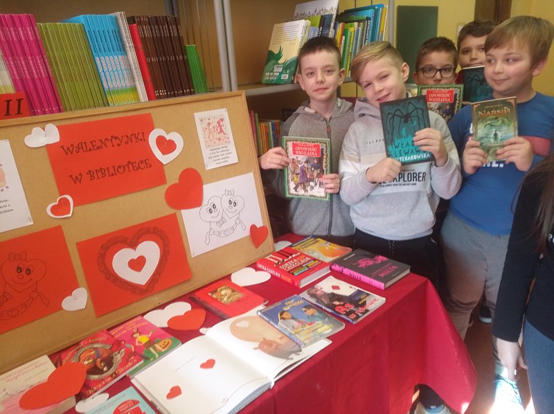 Dzień Świętego Walentego był także okazją do walentynkowego czytania. Uczniowie klasy IV uczestniczyli w lekcji bibliotecznej „Walentynki z klasyką literatury dziecięcej”. Dzieci z oddziałów przedszkolnych wysłuchały „Baśni o dwunastu miesiącach”. To pouczająca historia o tym, że grzeczność i dobre serce zostają wynagrodzone, a za lenistwo i złośliwość spotyka człowieka zasłużona kara.