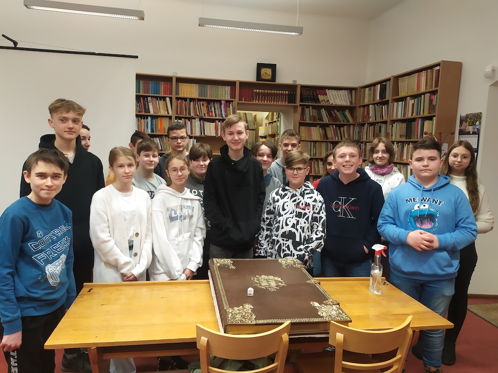 W ostatni dzień marca uczniowie klasy VII uczestniczyli w wycieczce do Pedagogicznej Biblioteki Wojewódzkiej w Kielcach. Wizytę tę zaplanowano w ramach Tygodnia Kultury Języka. Wszyscy zapoznali się z księgozbiorem biblioteki oraz wzięli udział w lekcji „Kornel Makuszyński – pisarz ze słońcem w herbie”.