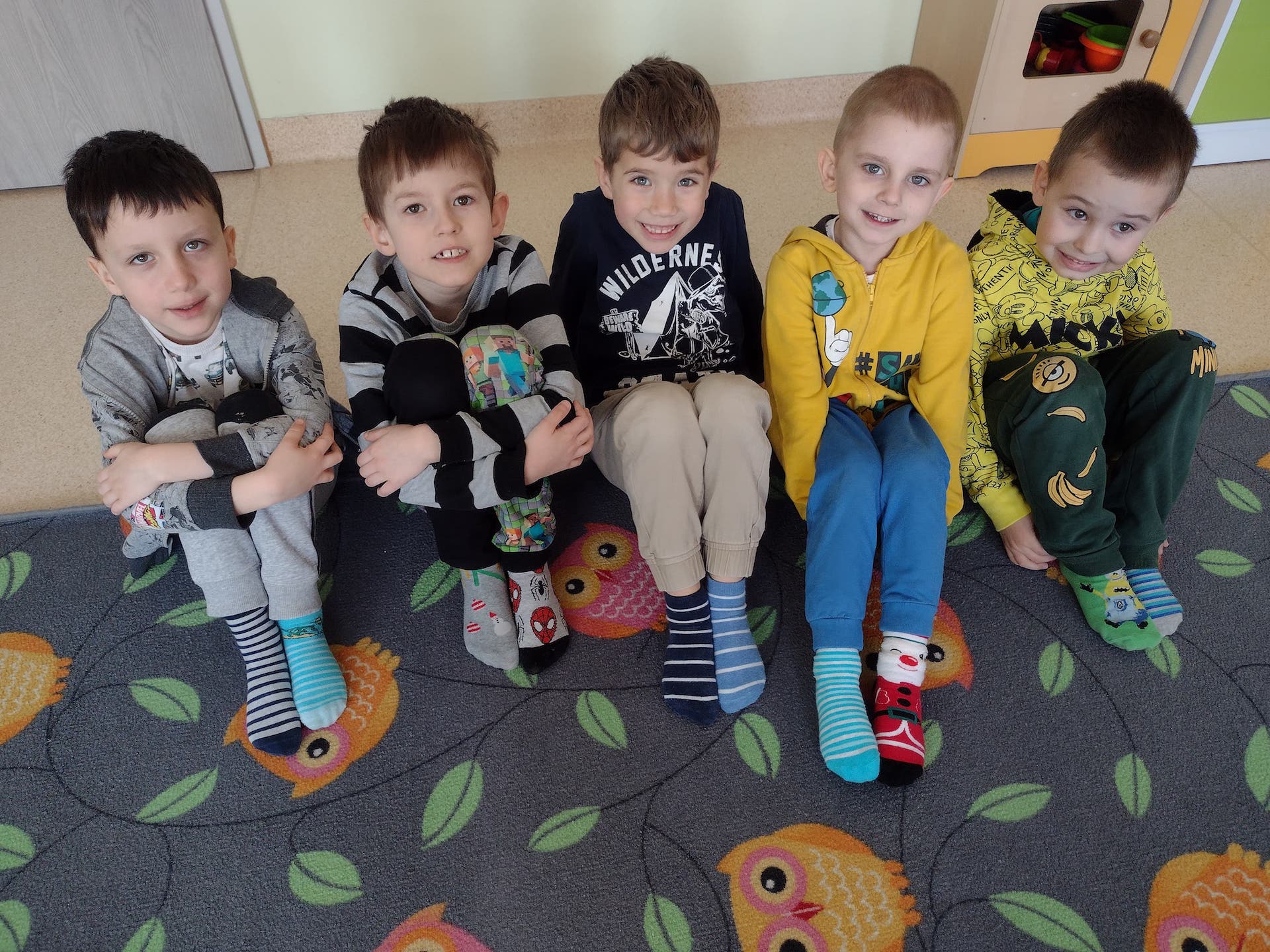 Przedszkolaki z oddziału przedszkolnego przyłączyły się do ogólnoświatowej akcji, miały w tym dniu ubrany kolorowe skarpetki ,,nie do pary''.