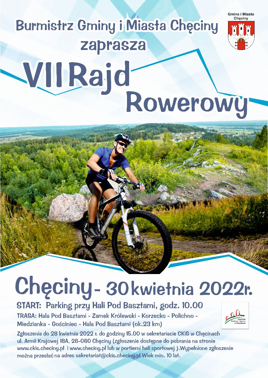 Burmistrz Gminy i Miasta Chęciny zaprasza do udziału w VII Rajdzie Rowerowym, który odbędzie się 30 kwietnia 2022 r.