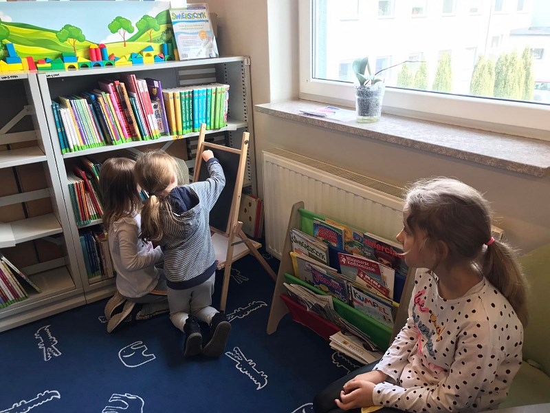 Podczas wizyty dzieci obejrzały plany miasta, zapoznały się zasobami biblioteki oraz mediateki. Dowiedziały się jak zmieniła się biblioteka i sposób korzystania z jej zasobów w ciągu ostatniego stulecia.