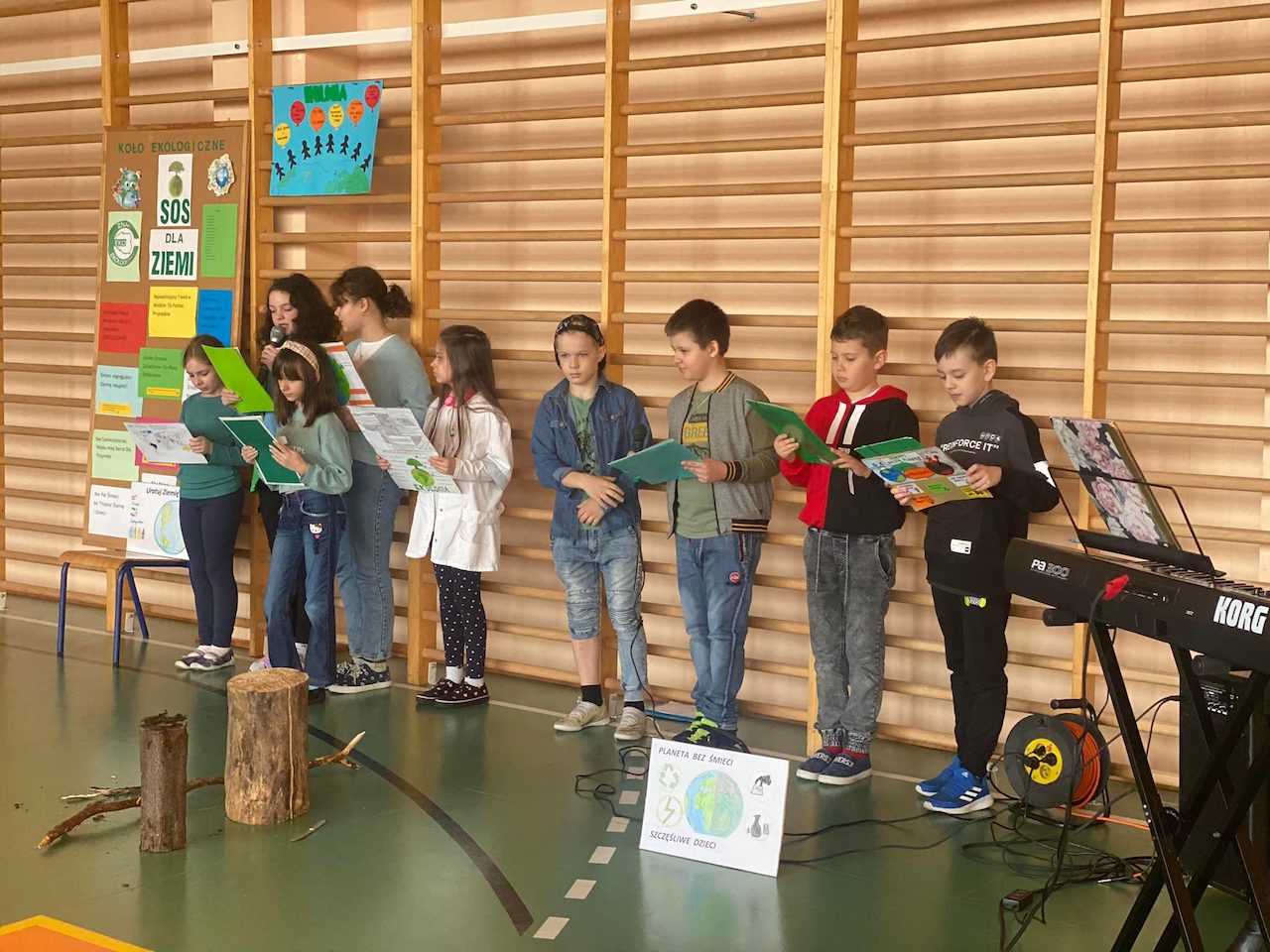 W ramach obchodów Światowego Dnia Ziemi uczniowie klasy IV należący do koła ekologicznego przygotowali program słowno- muzyczny oraz uczestniczyli w akcji sprzątania świata.