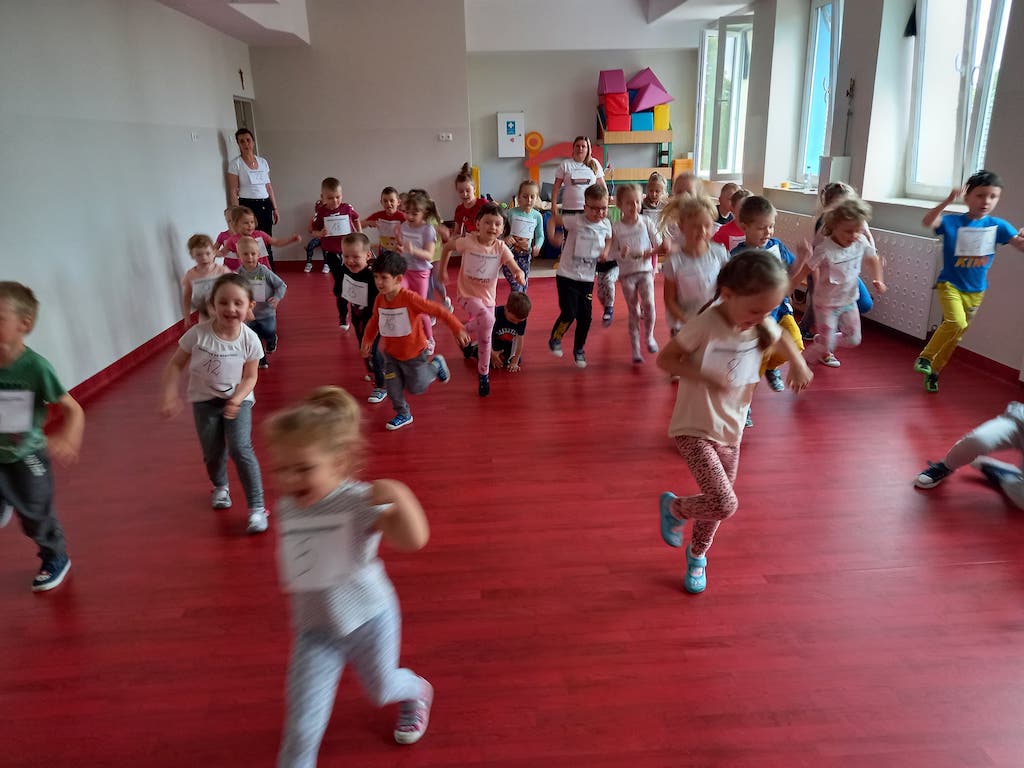 To sportowe wydarzenie ma na celu popularyzowanie biegów wśród dzieci, zachęcenie do zdrowego stylu życia i aktywnego spędzania czasu, w tym czasu na świeżym powietrzu. Niestety tym razem pogoda nam nie sprzyjała i bieganie odbyło się na sali gimnastycznej. Szczęśliwe dzieciaki z wielkim zaangażowaniem wzięły się za pokonywanie każdego metra. Nie zabrakło także dużo uśmiechu i sportowych zabaw.