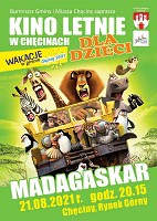 W najbliższą sobotę 21 sierpnia 2021 r. o godz. 20.15, tradycyjnie na Rynku w Chęcinach zostanie wyemitowany pełnometrażowy film animowany dla dzieci pt. „Madagaskar”.